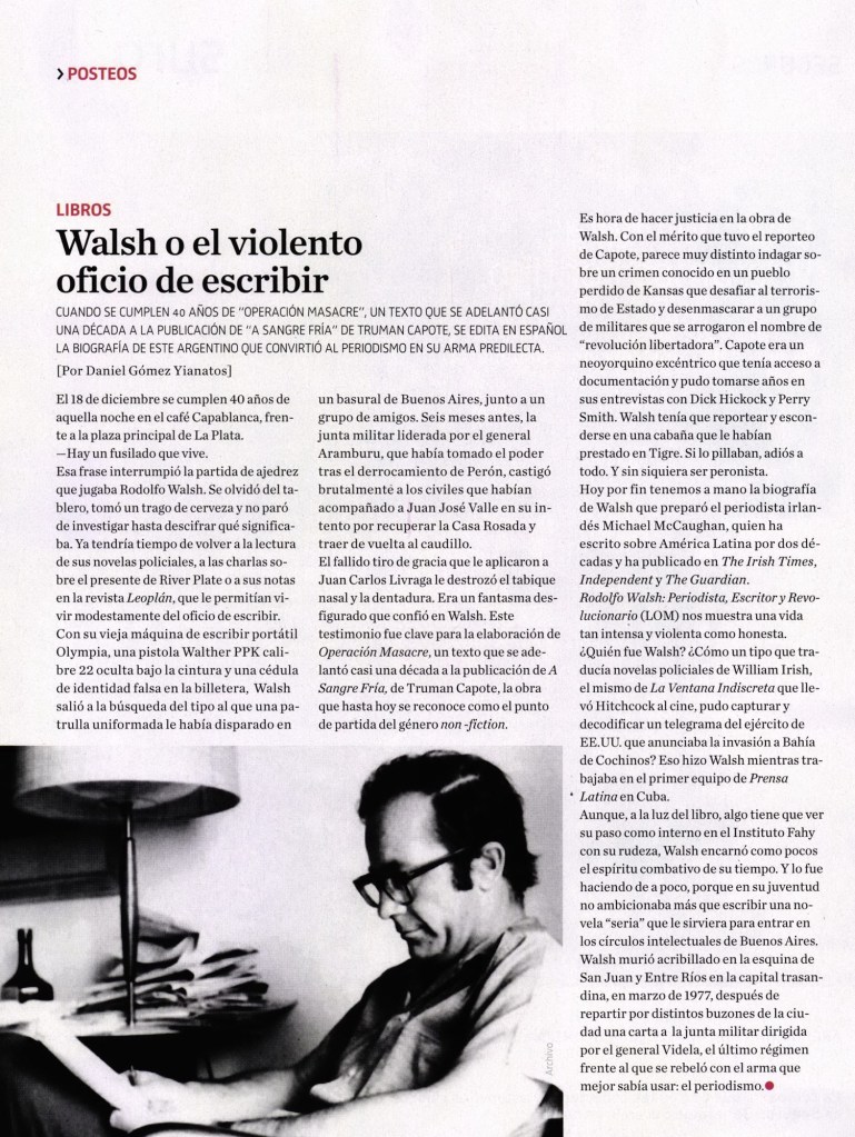 Hoy por fin tenemos a mano la biografía de Walsh que preparó el periodista irlandés Michael McCaughan, quien ha escrito sobre América Latina por dos décadas y ha publicado en The Irish Times, Independent y The Guardian.